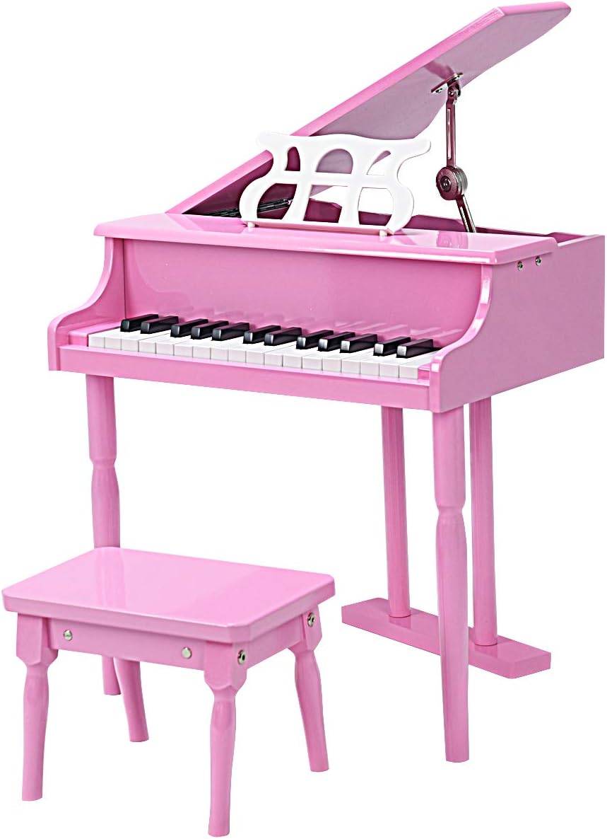 Costway Piano pour Enfants à 30 Touches avec Pupitre, Banc, Jouet Piano Musical pour Enfant Éducatif de Musique pour Garçon/Fille Noir/Rose 50 x 52 x 51CM (Rose)
