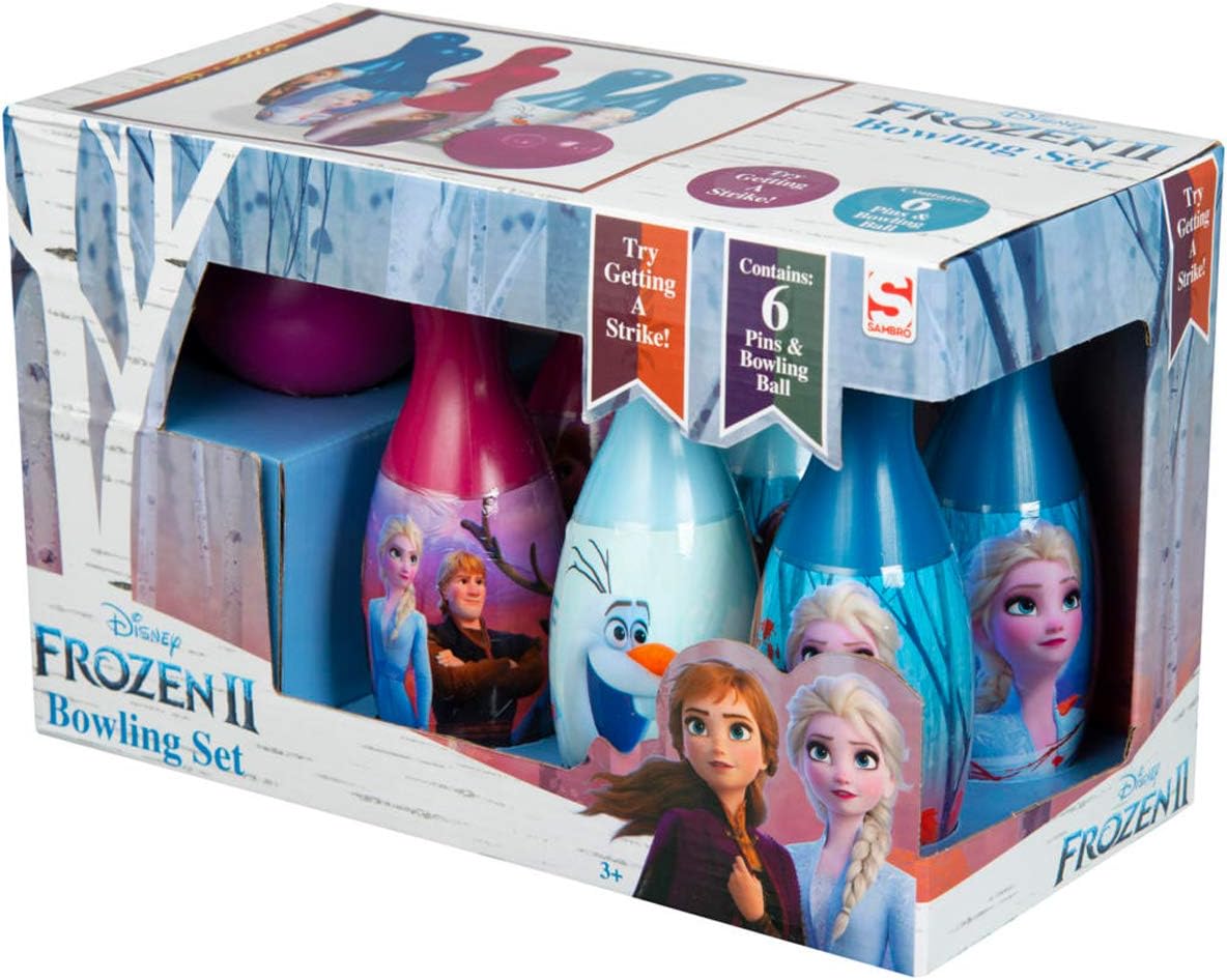 💎 CE QUI EST INCLUS DANS CE COFFRET --- 6 quilles et une boule de bowling avec leurs personnages préférés de Frozen 2 Anna Elsa Olaf Sven et Kristoff. Une fois le jeu terminé, toutes les pièces peuvent être rangés dans la boîte de rangement qui peut aussi servir pour le transport.