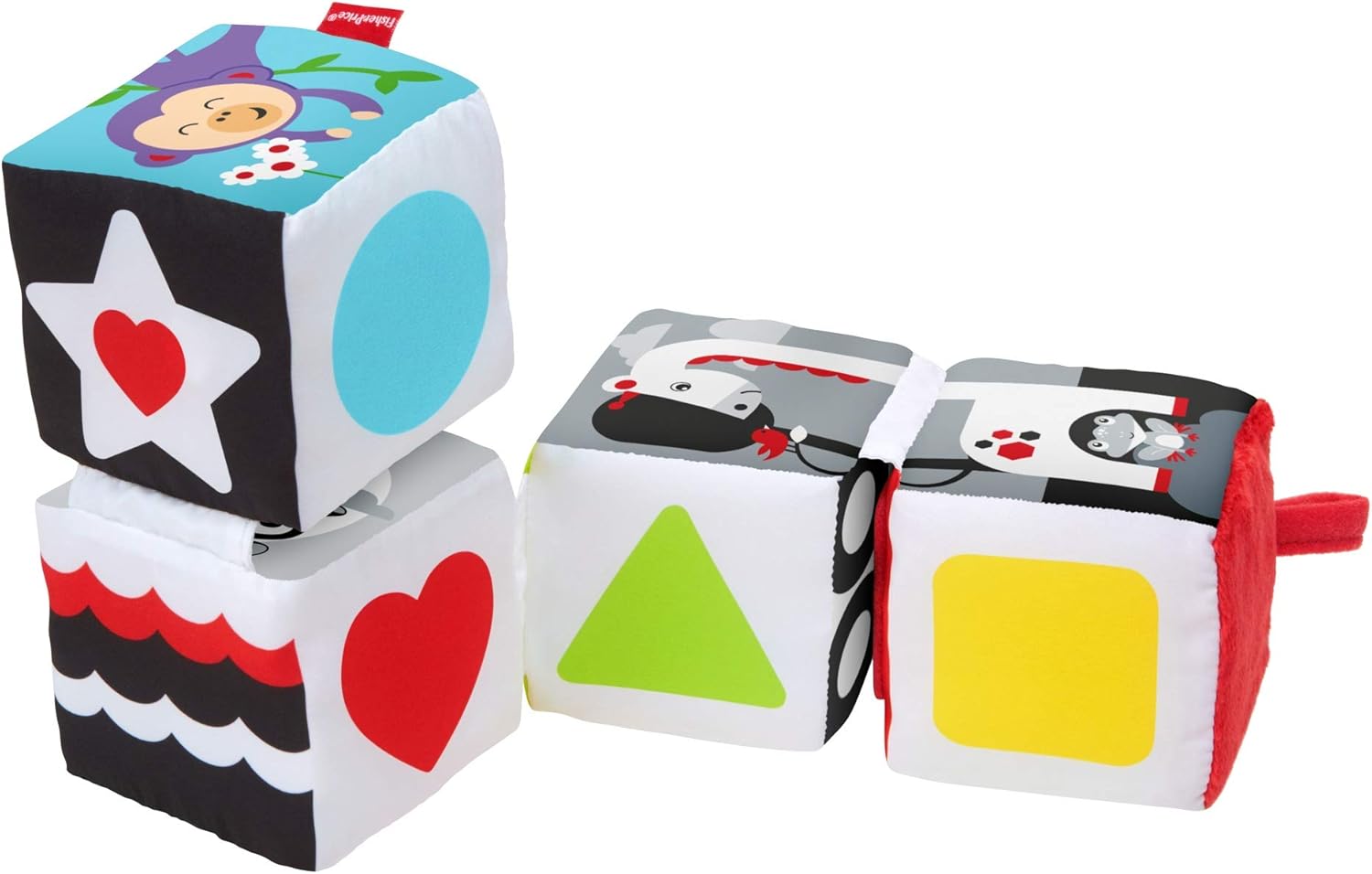 Fisher-Price Cubes Douceur Amusants, jouet bébé avec faces colorées, dès 3 mois, GFC37