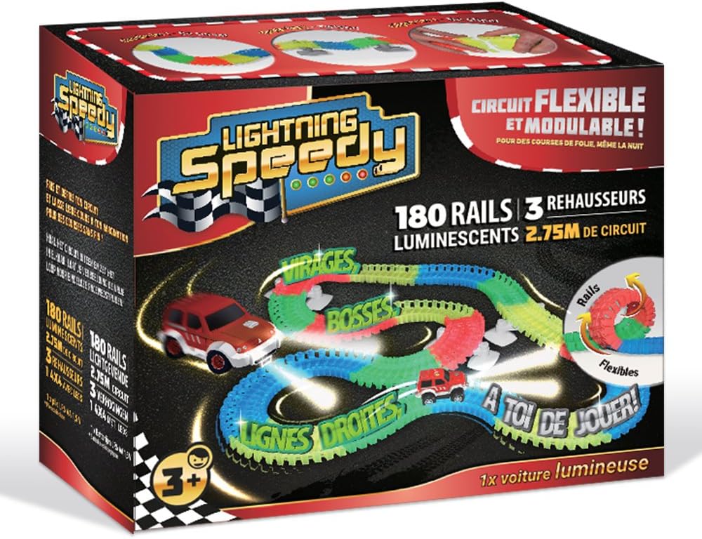LIGHTNING SPEEDY Circuit de Voiture Flexible, modulable et Luminescent Ultra Fun avec Ses 180 Rails - Starter Set