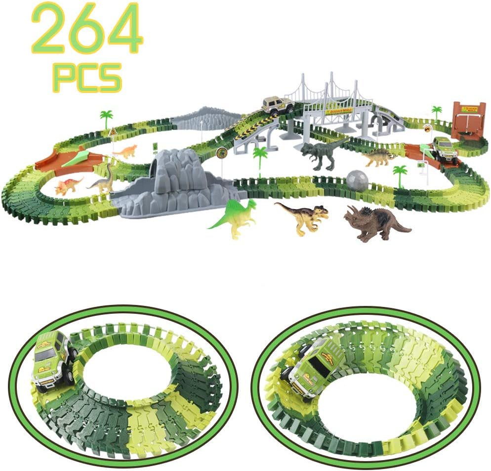 Nuheby Circuit Voiture Enfant Circuit Dinosaures Jouet Circuit Flexible 264 Pièces,Jeu Educatif Creation pour Cadeau Enfant 3 4 5 6 Ans Garcon Fille