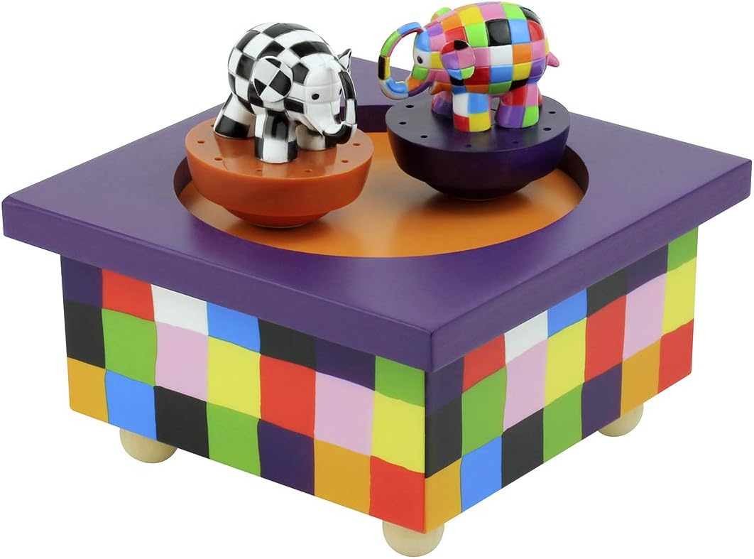 TROUSSELIER - Elmer l'Eléphant - Boîte à Musique Dancing - Idéal Cadeau de Naissance - 2 Figurines Amovibles - Fonctionnement Simple - Musique Let It Be des Beatles - Colori Multicolor